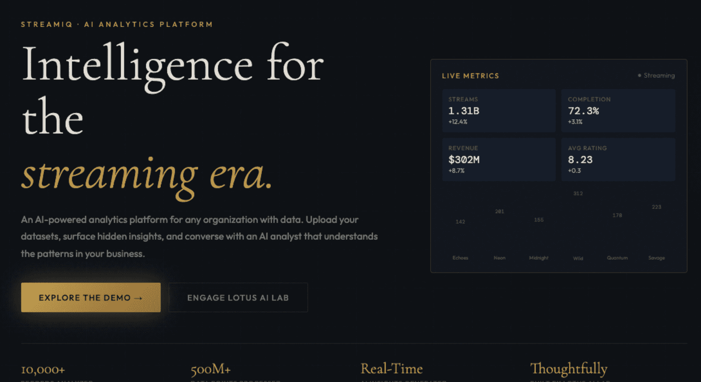 An AI-powered analytics platform for any organization with data. Upload your datasets, surface hidden insights, and converse with an AI analyst that understands the patterns in your business.